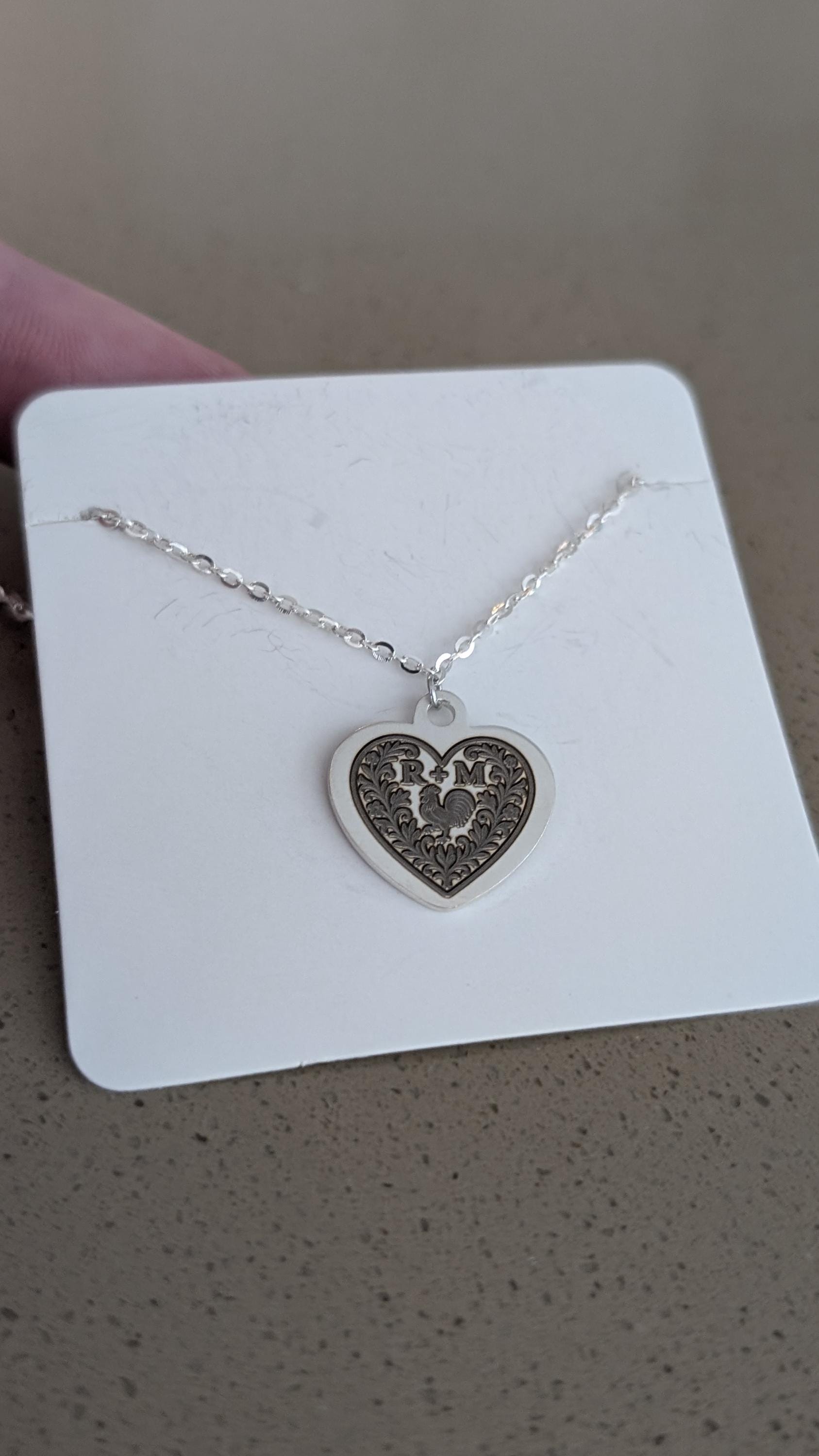 Turn love into a wearable keepsake with this custom-engraved .925 sterling silver heart necklace. Each pendant is delicately handcrafted and laser engraved with your custom design β initials, meaningful symbols, pet tributes, or something uniquely you.