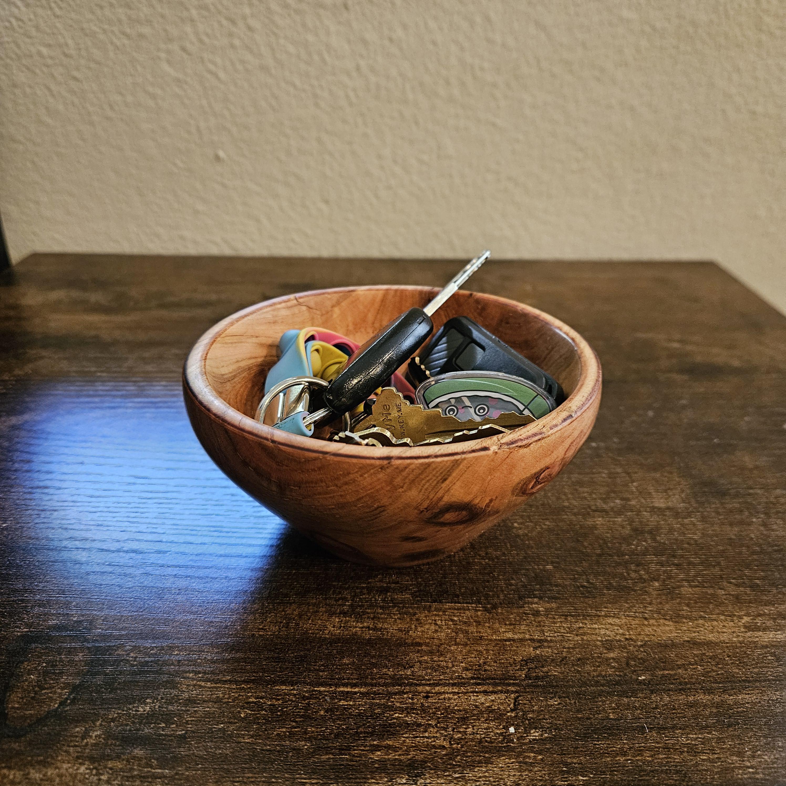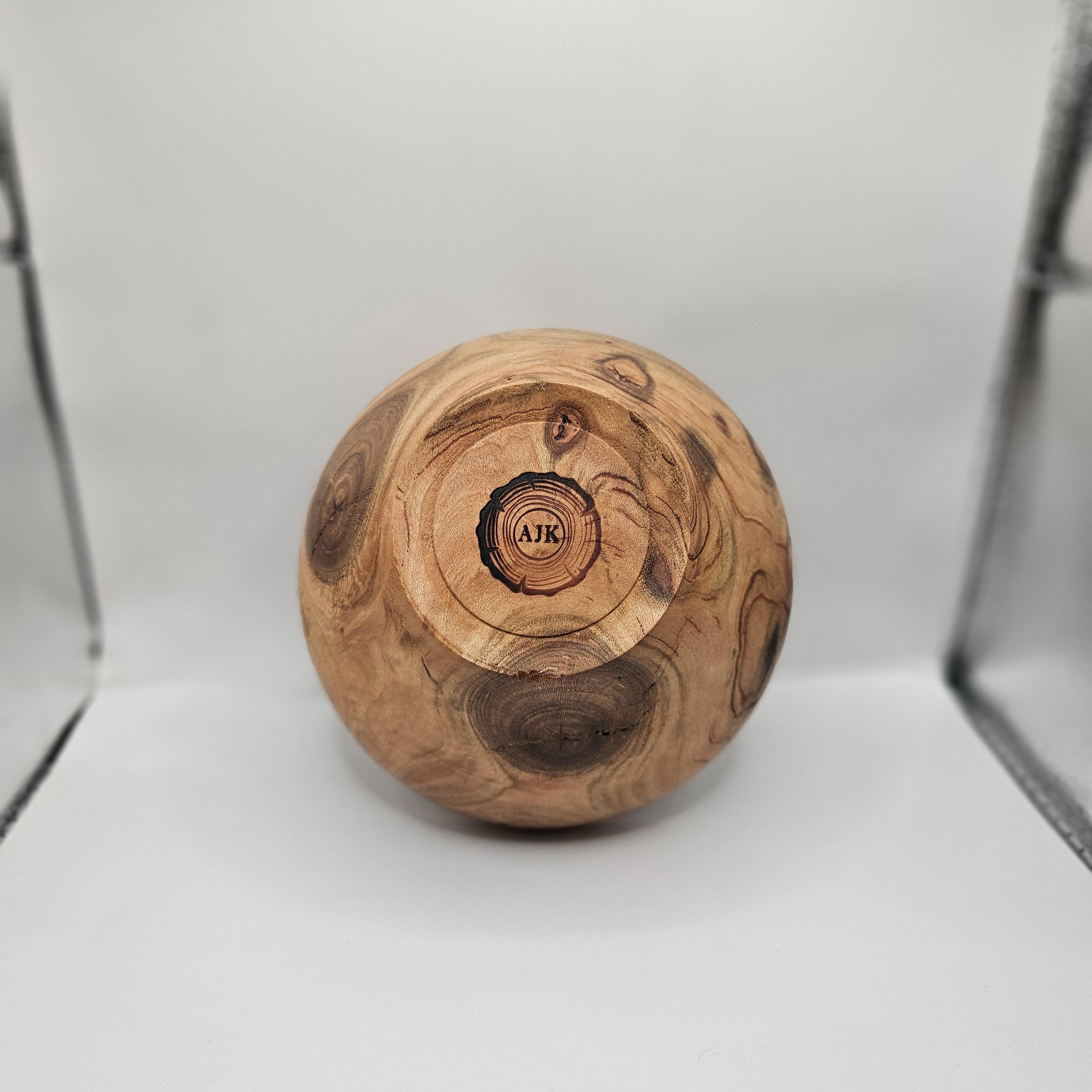 This hand-turned wooden bowl is a beautiful blend of craftsmanship and natural simplicity. Carefully shaped from solid wood, each piece highlights unique grain patterns, warm tones, and organic character—no two are ever the same.