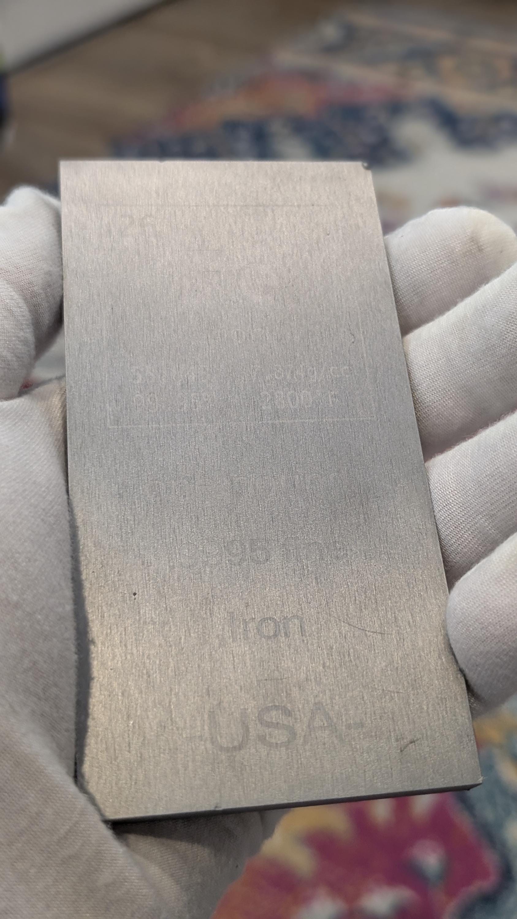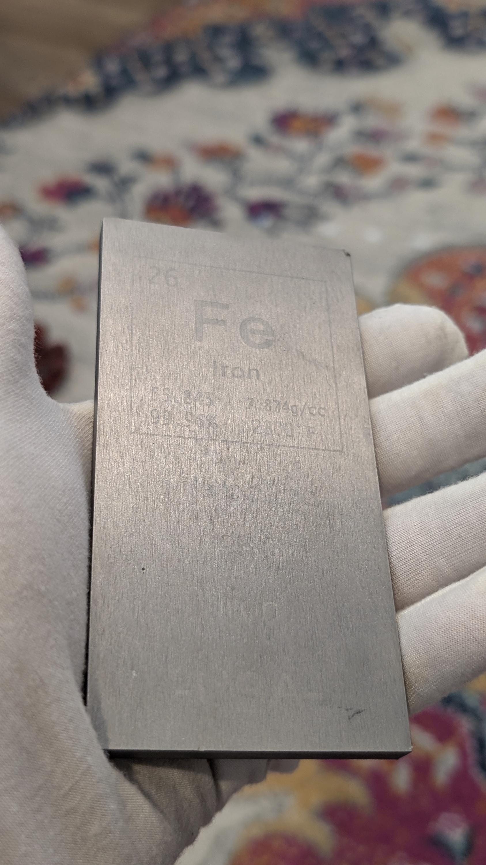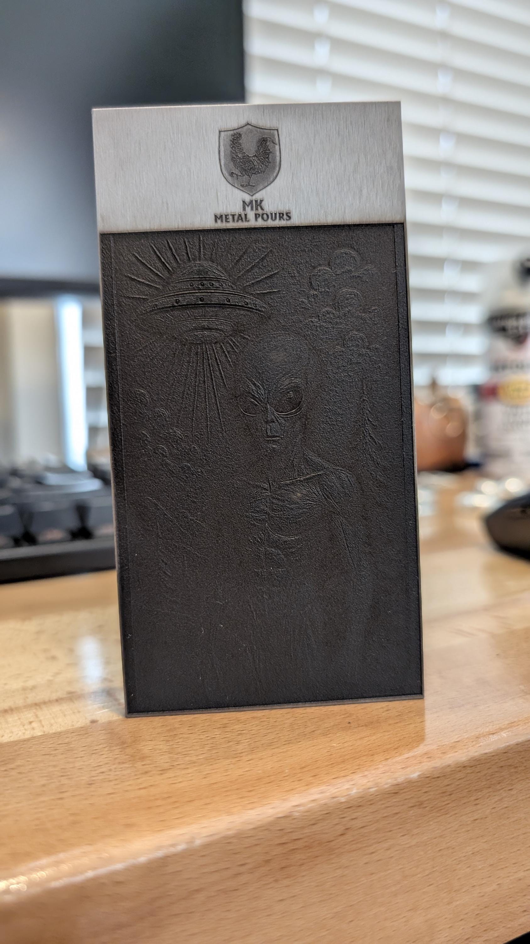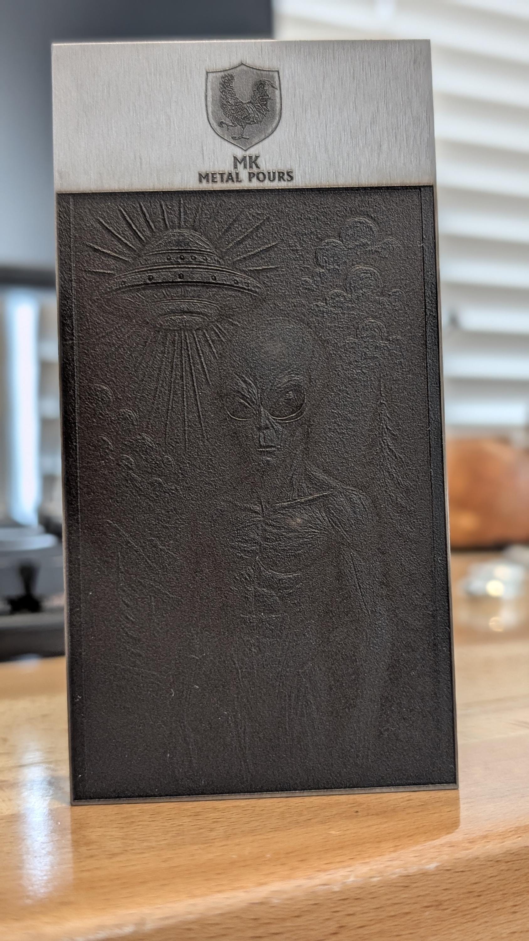 After engraving, the piece weighs just under 1 pound — a substantial, collectible slab of metal art that feels as otherworldly as it looks.