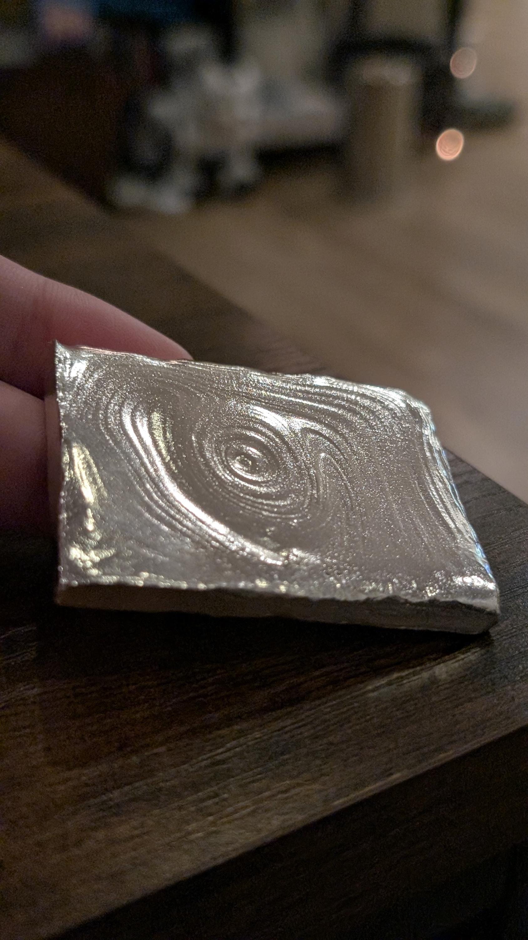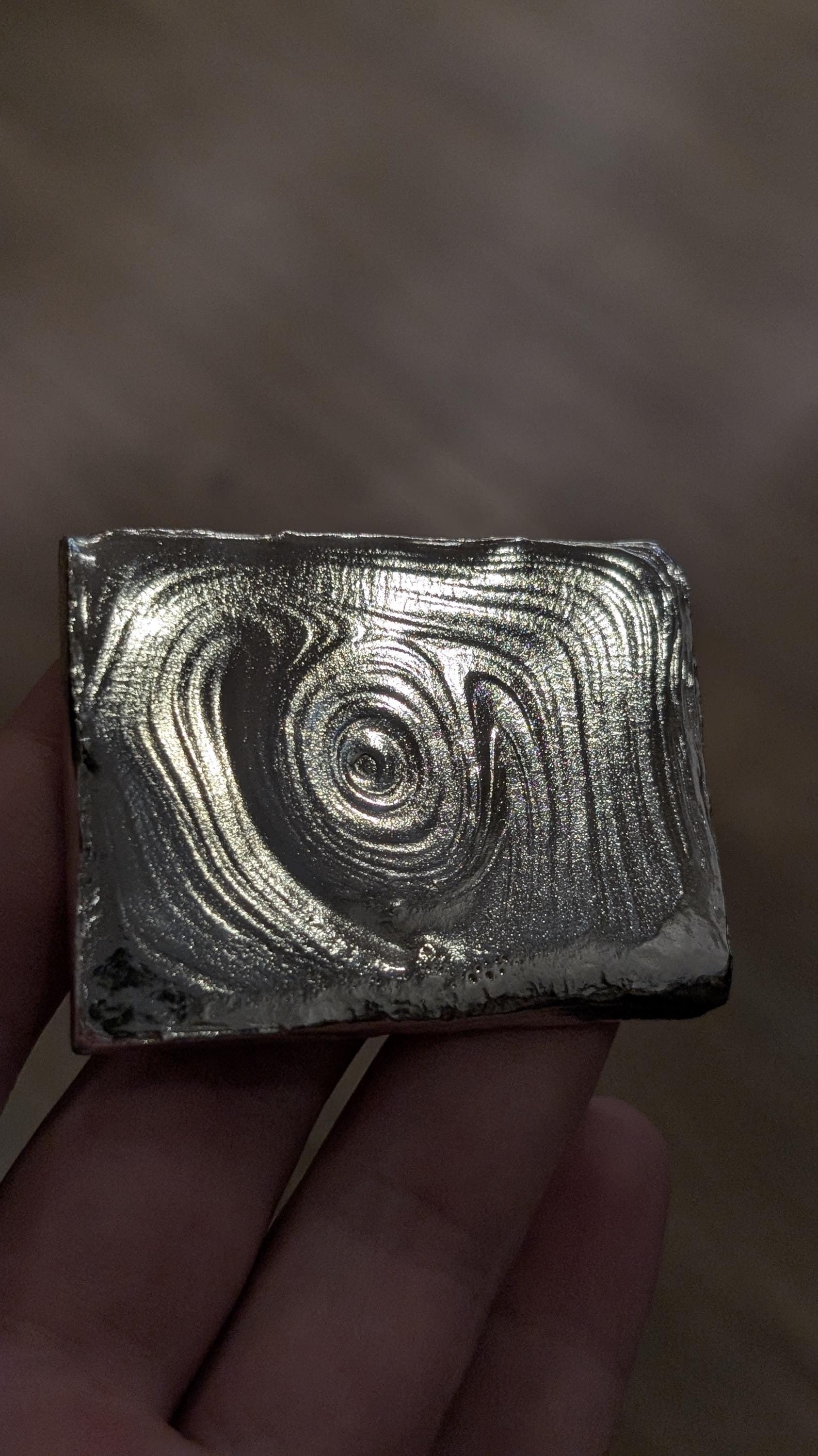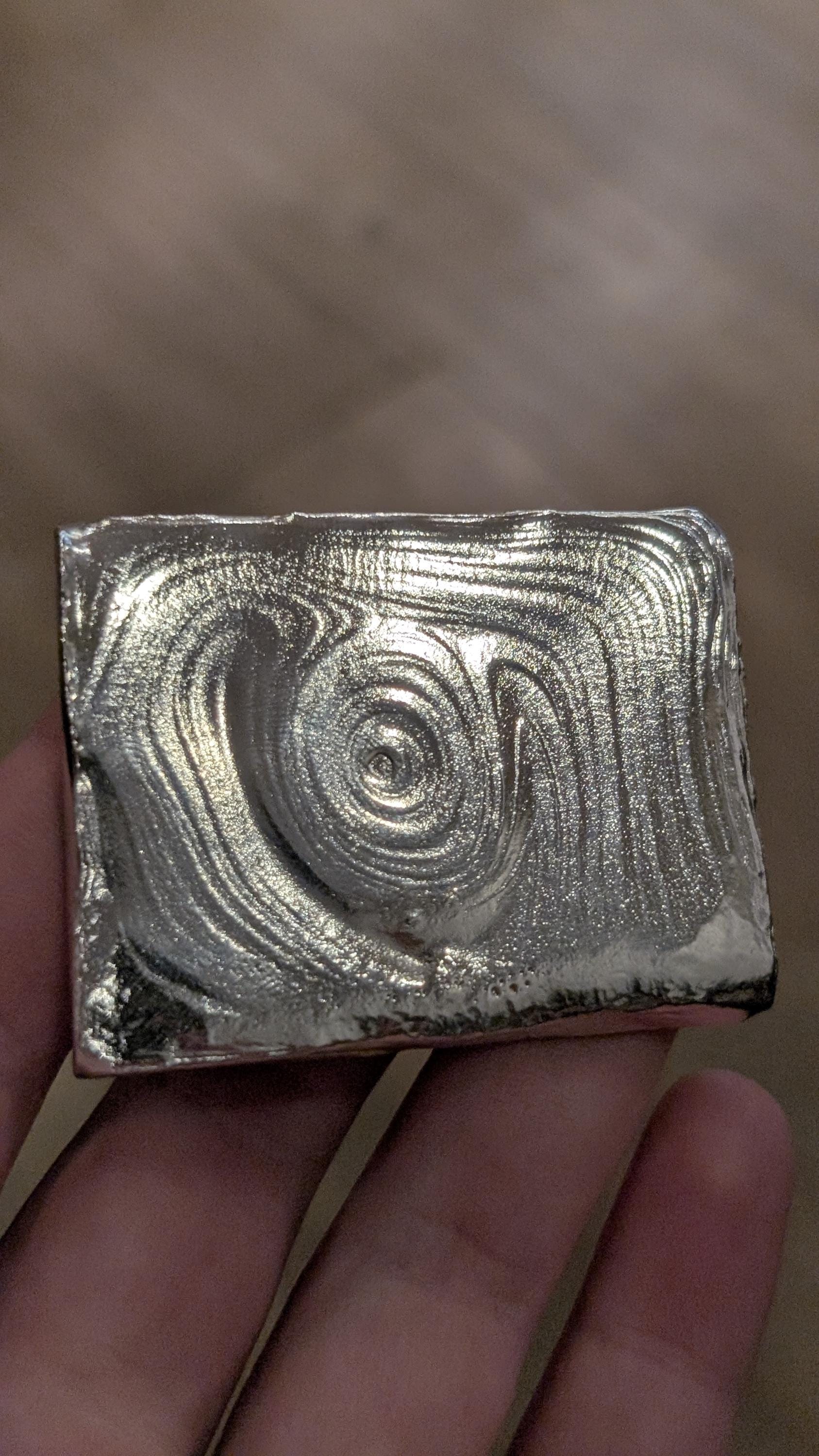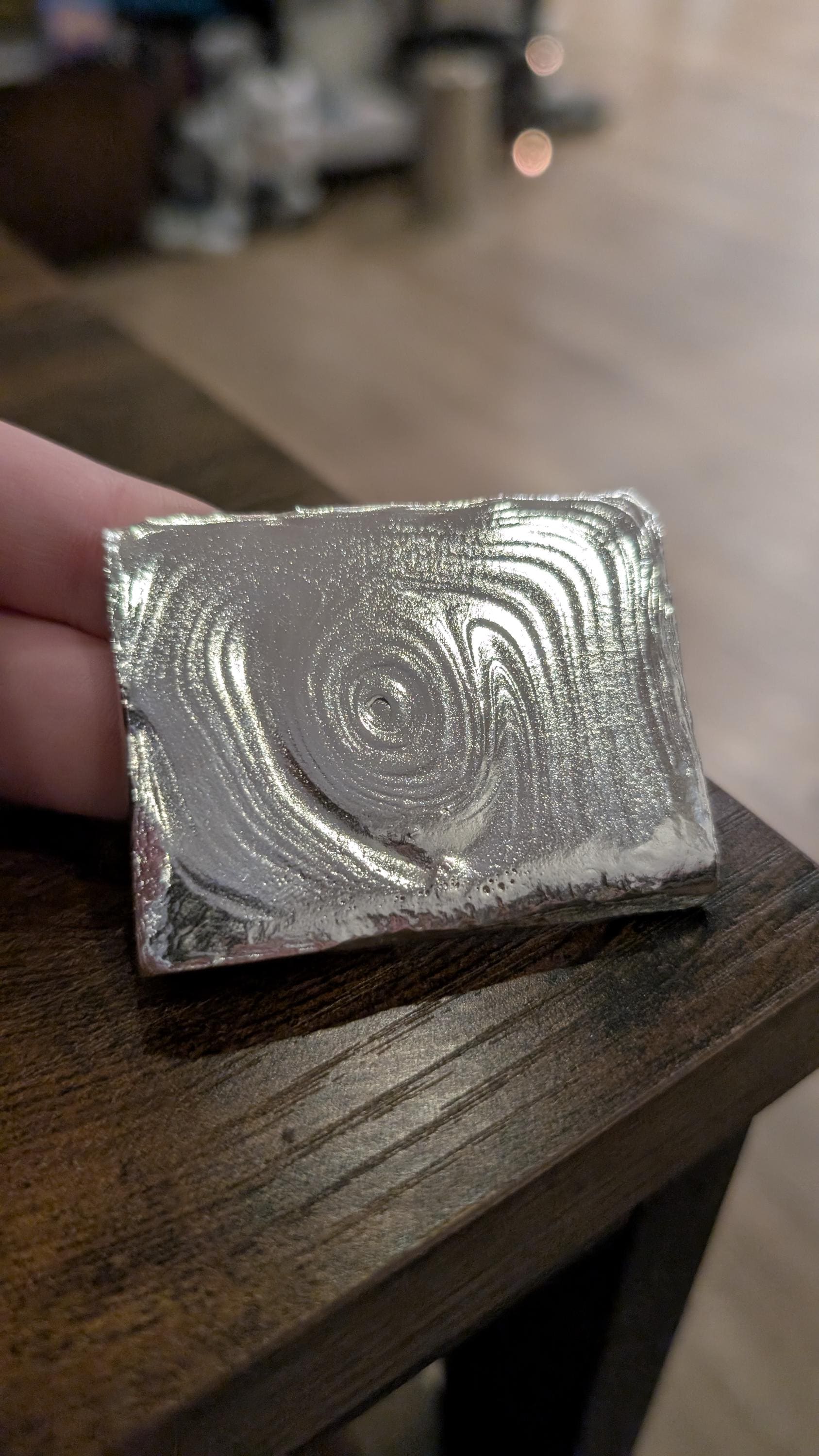 The edges retain a bit of raw character from the pour, giving it that handmade feel you don’t get from mass produced bars. This piece works as both display art and serious silver weight.