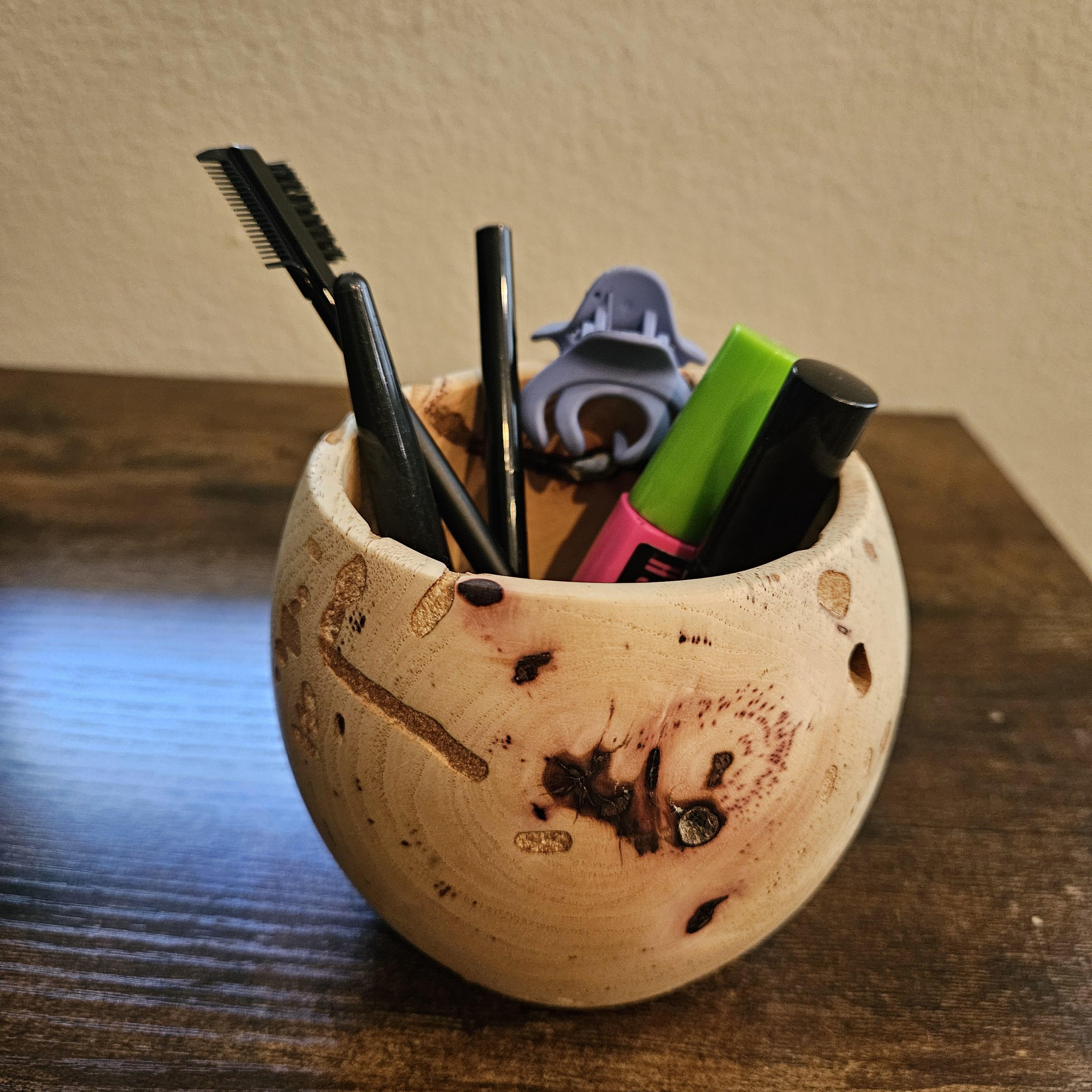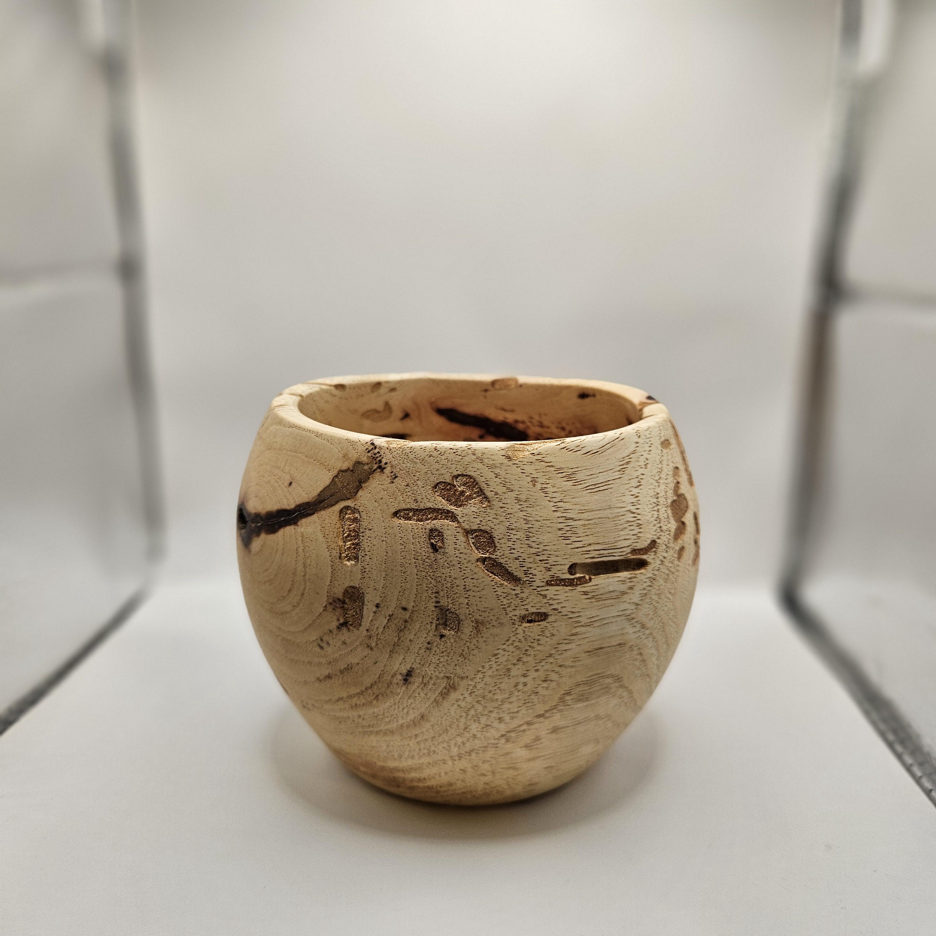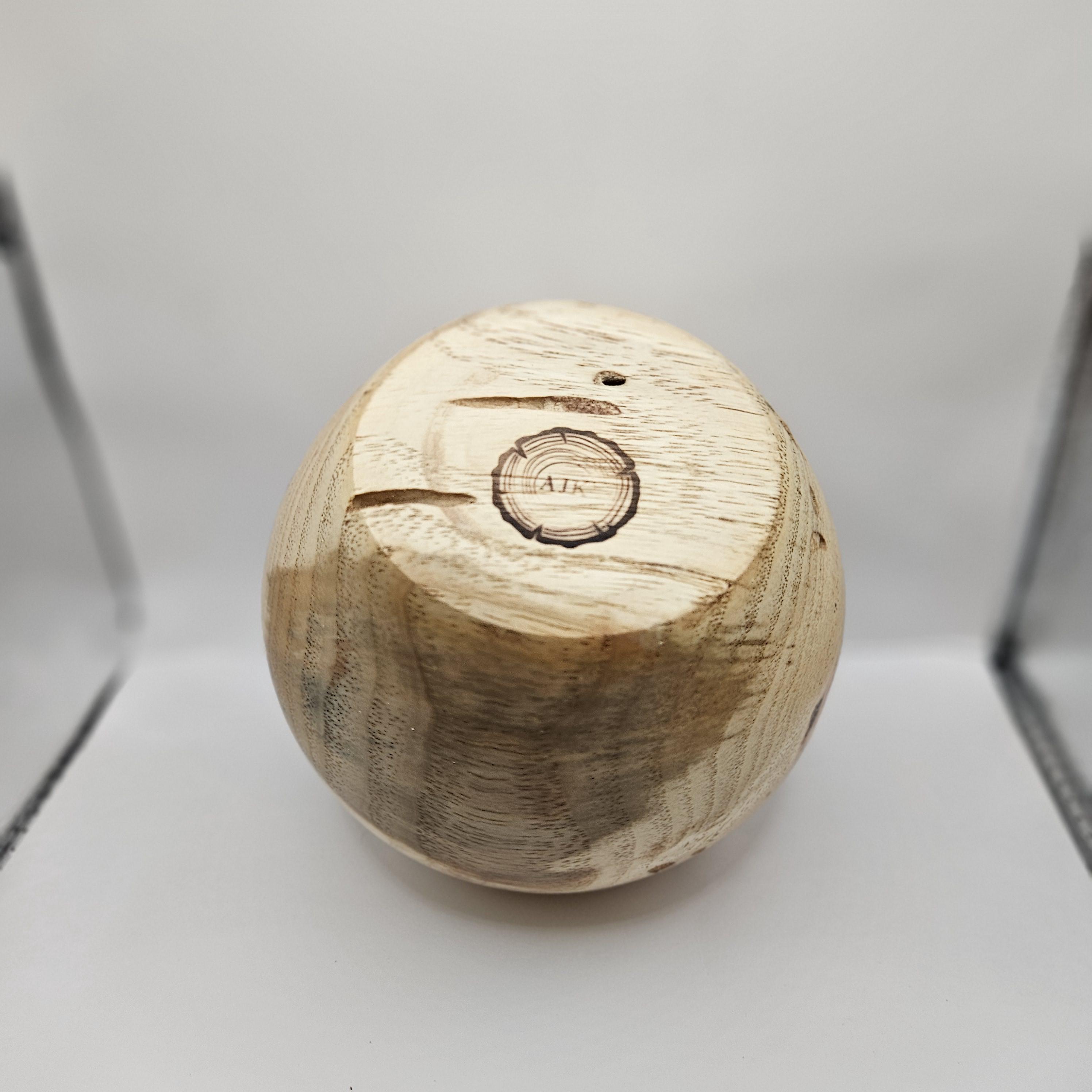 Elevate your space with this one-of-a-kind, hand-turned wooden bowl—an organic statement piece that blends sculptural form with natural elegance. Crafted from a single piece of solid wood, this vessel showcases striking natural markings, rich tonal variations, and intricate grain patterns that cannot be replicated.