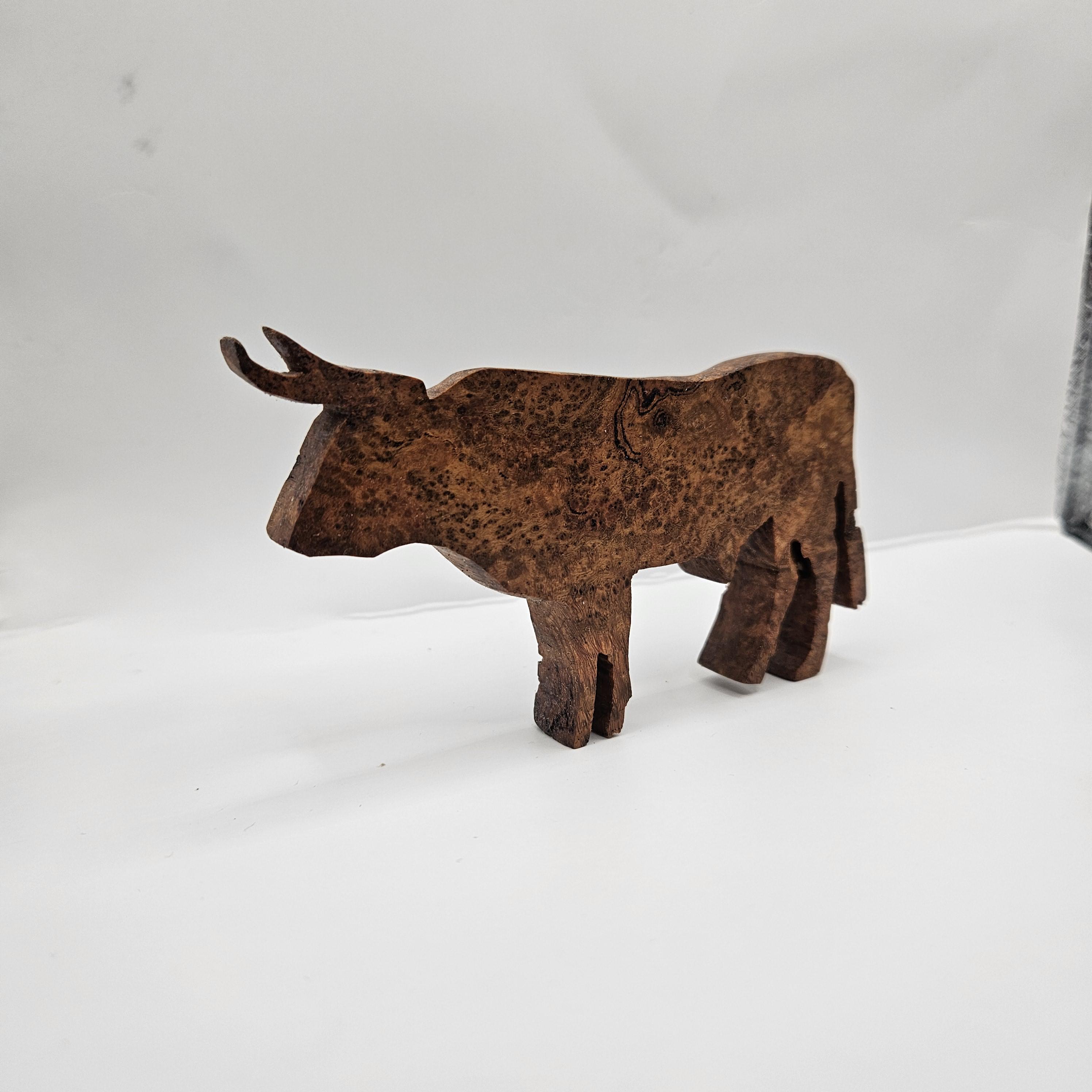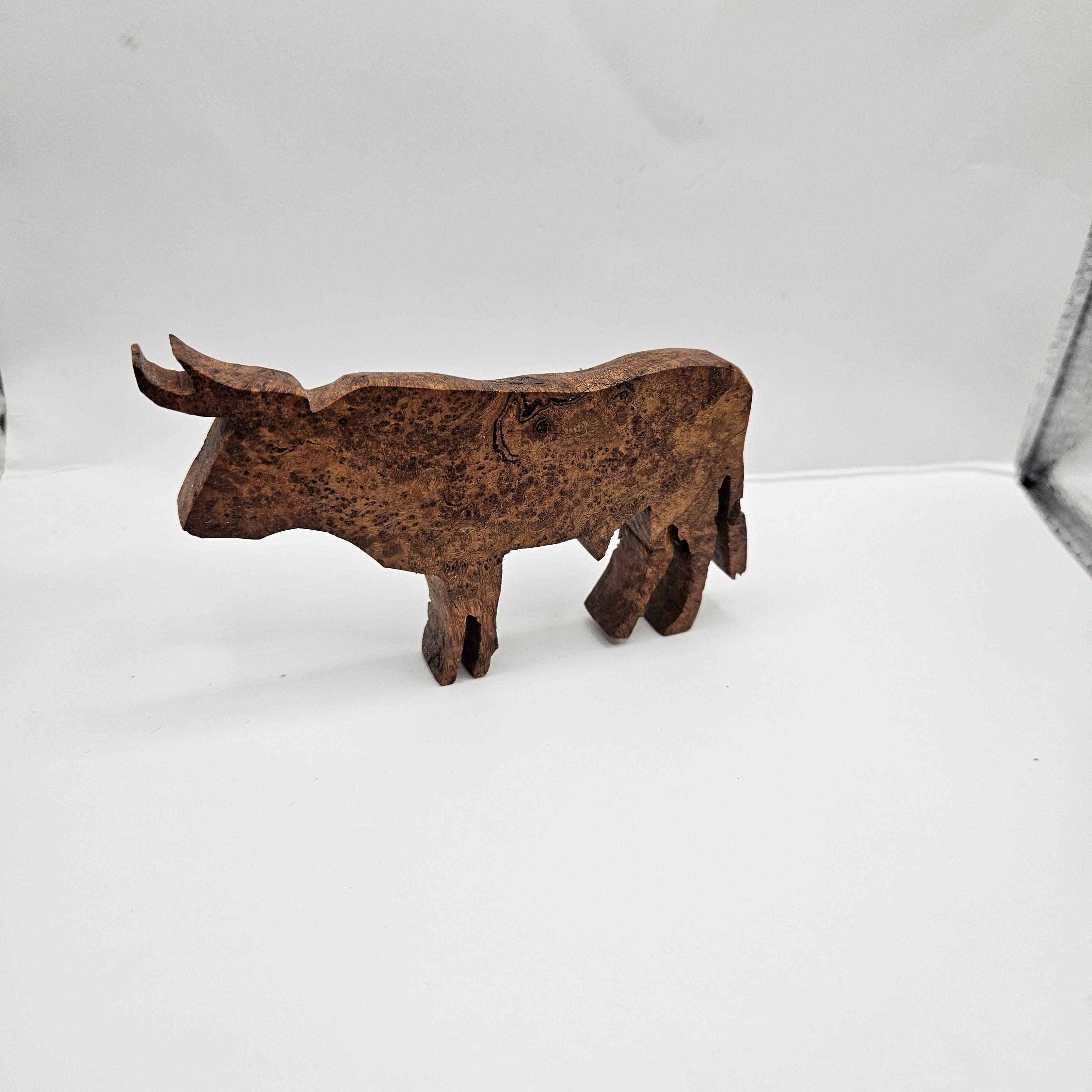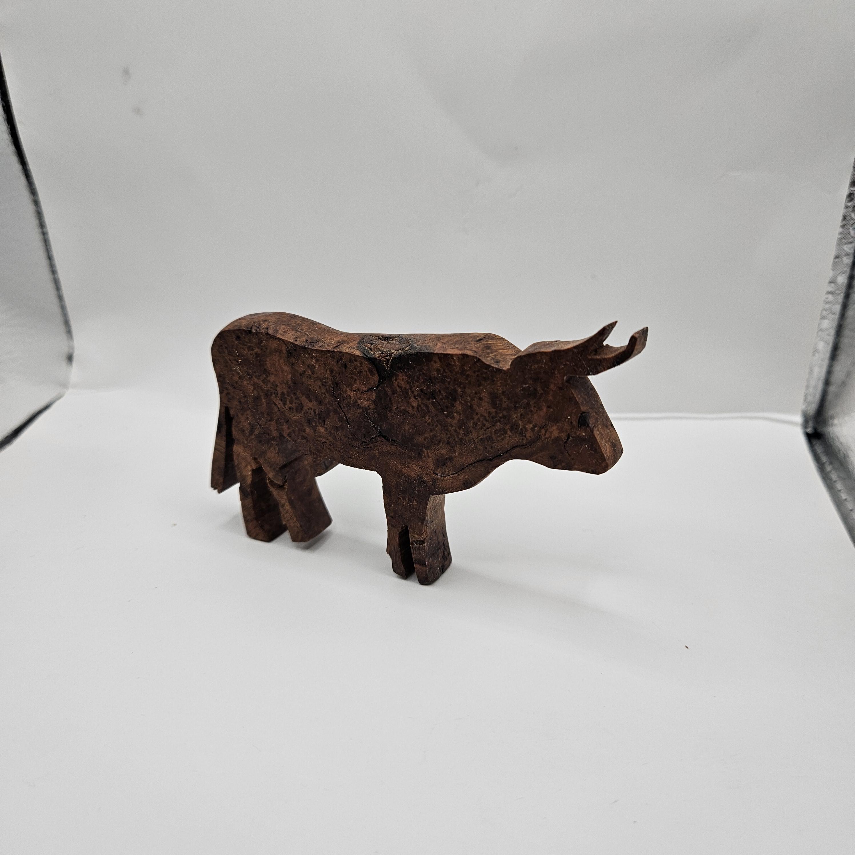 • Handmade wooden bull sculpture