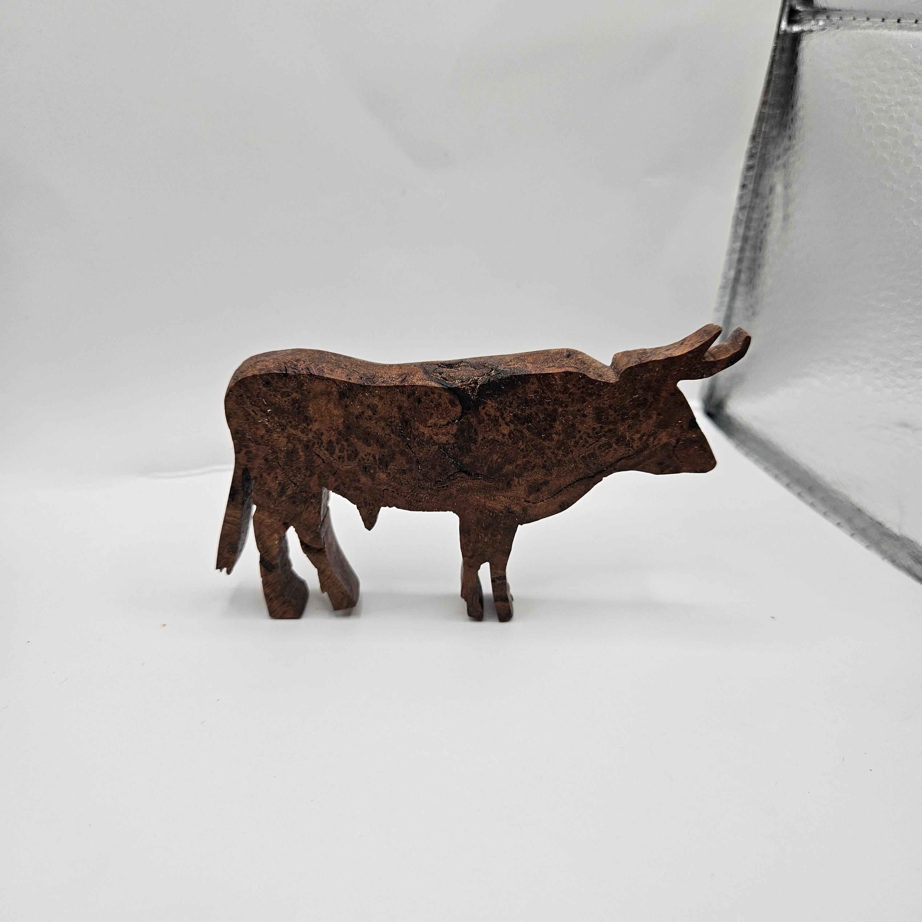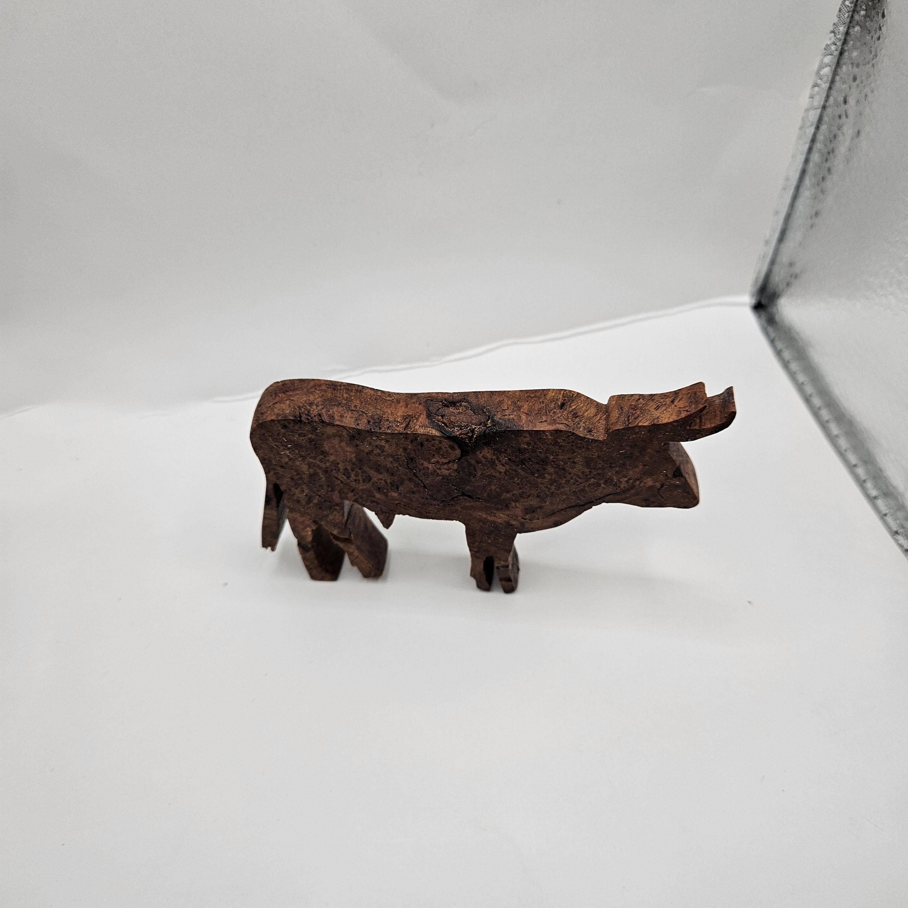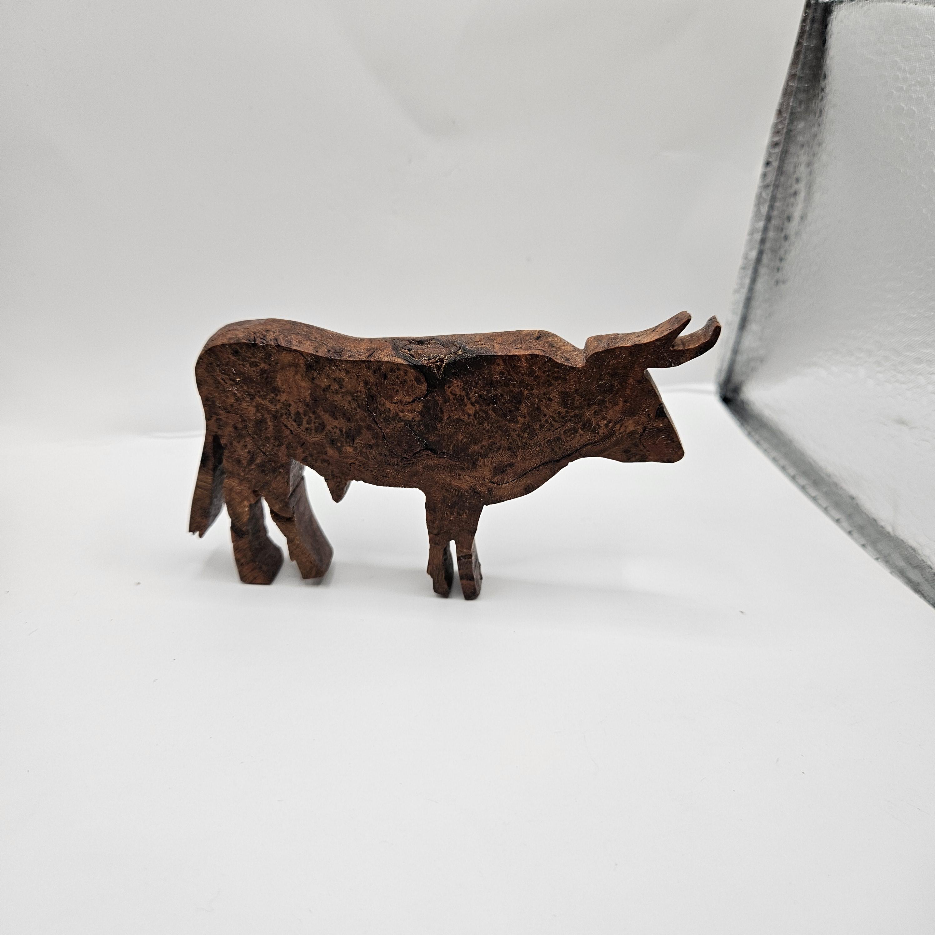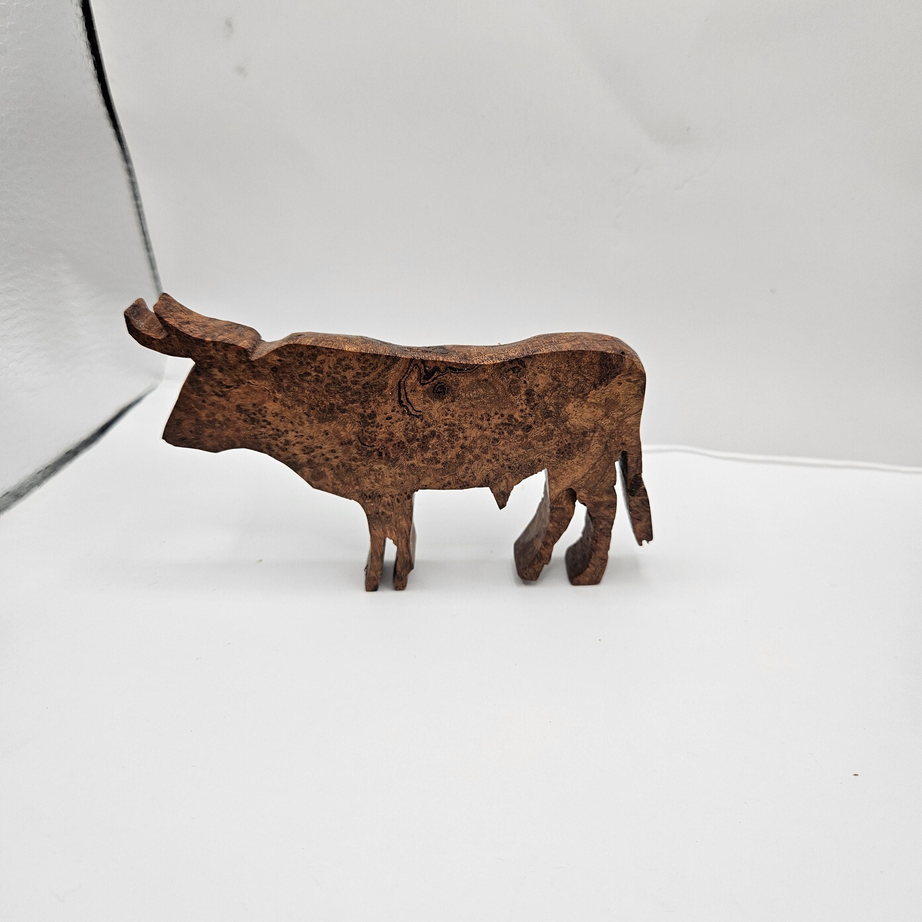 • Handmade wooden bull sculpture