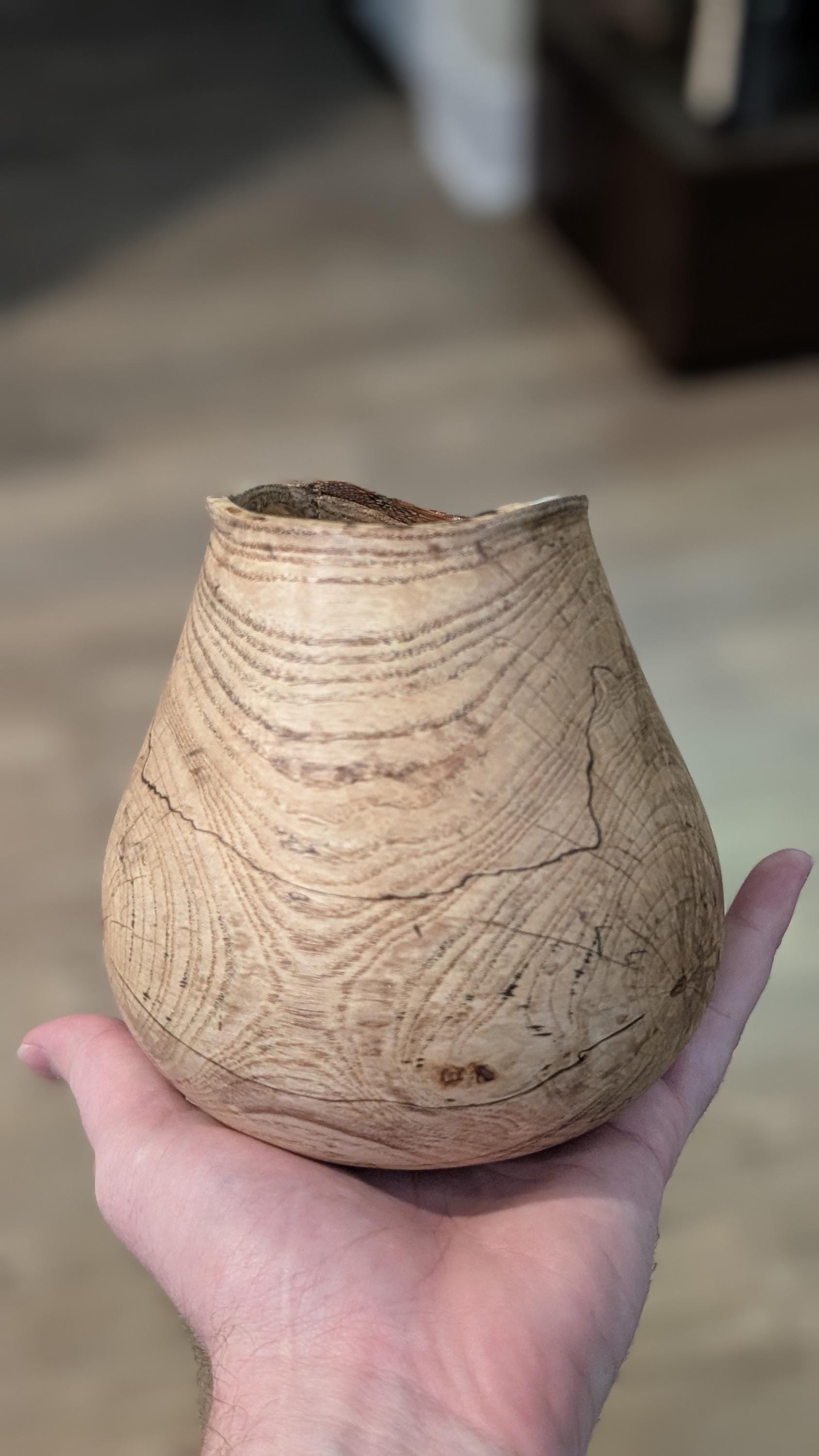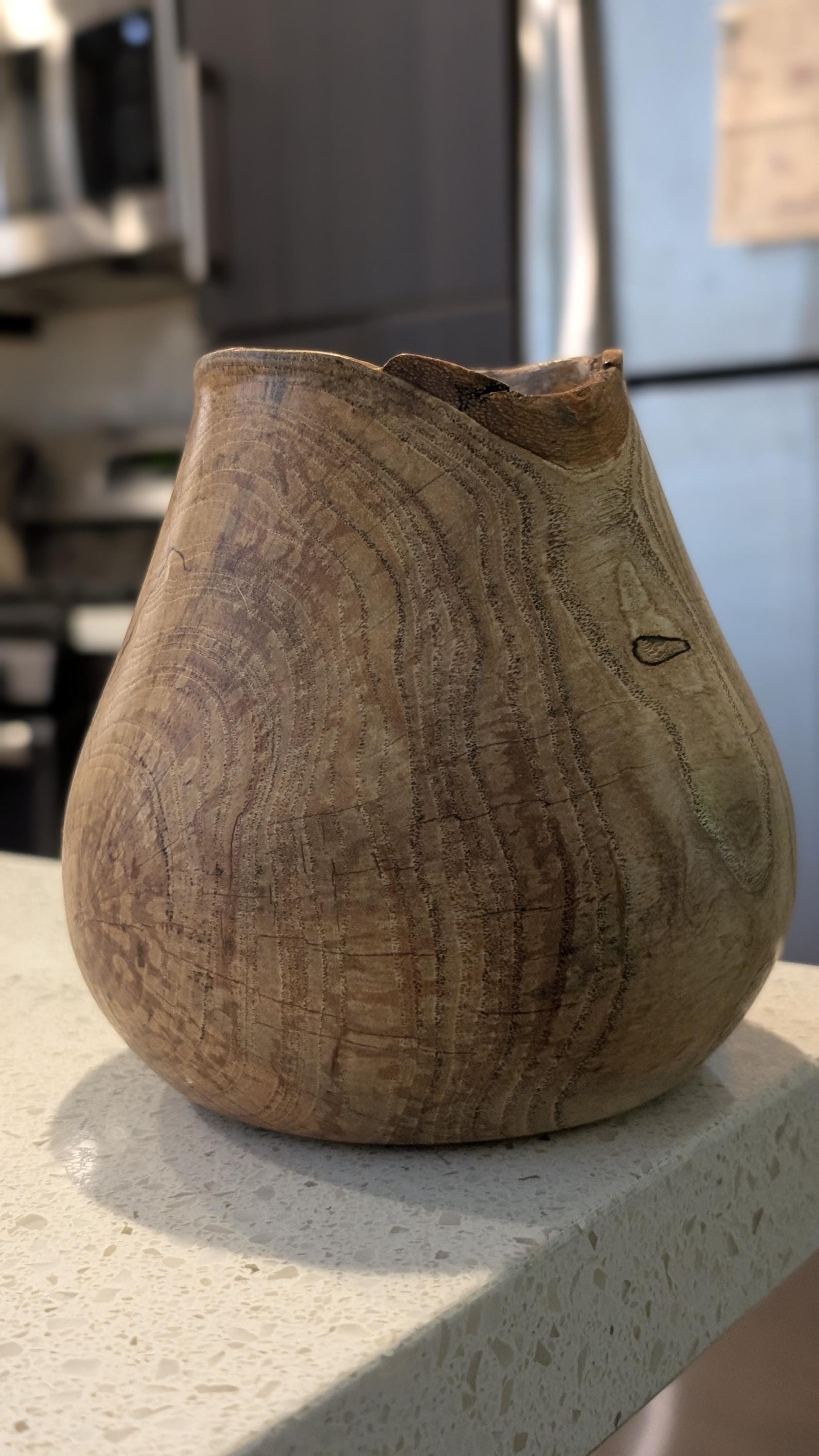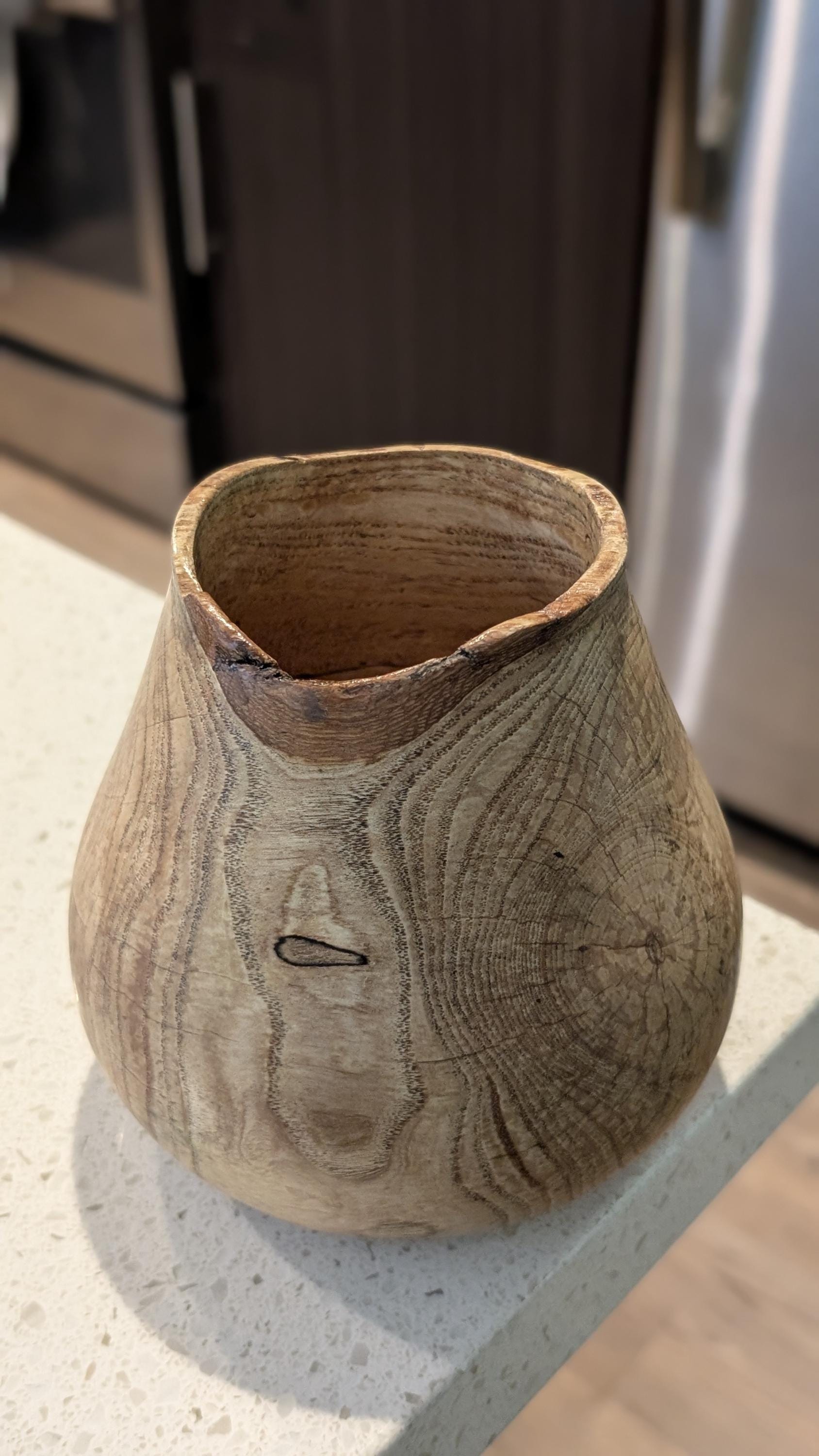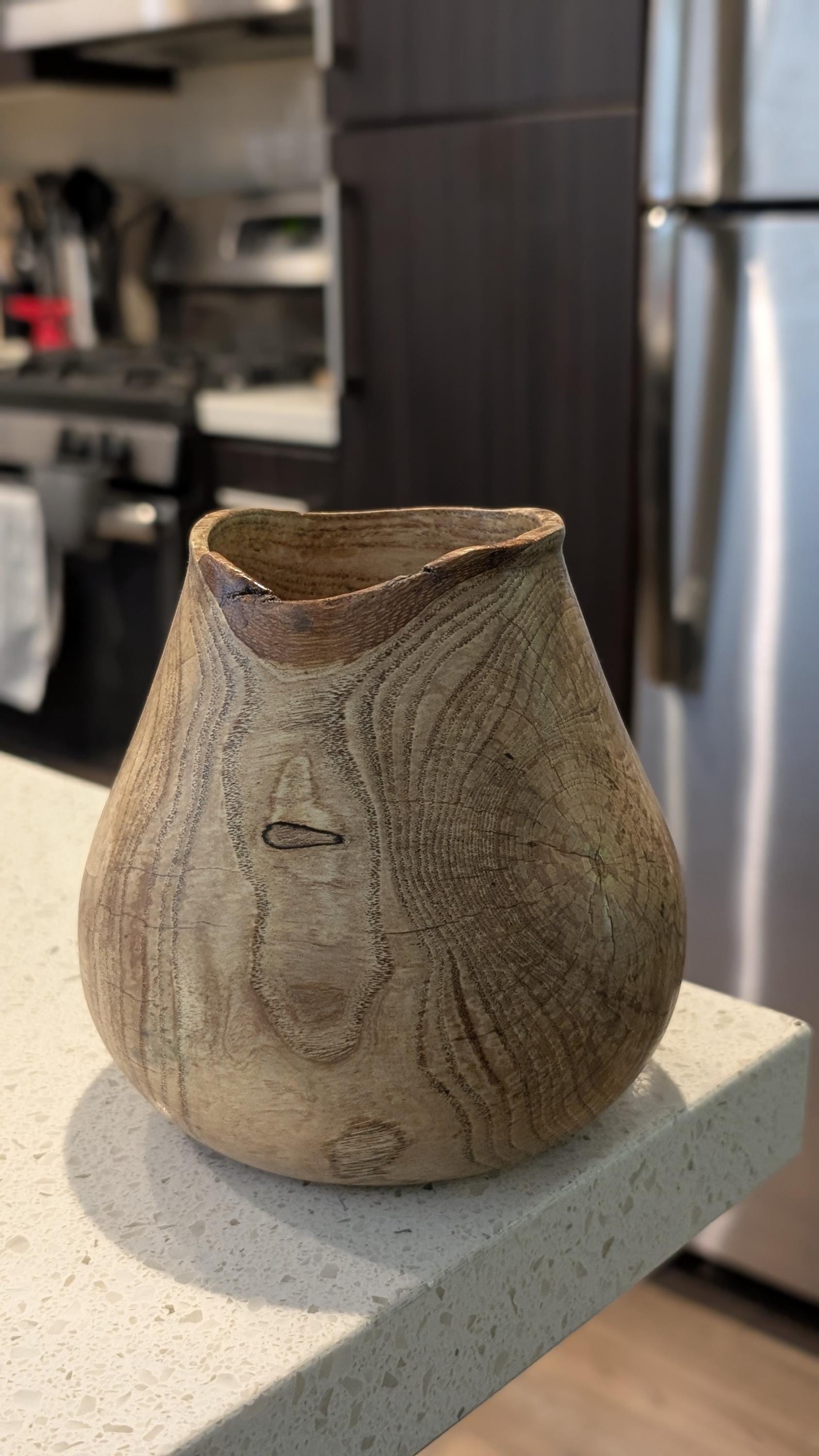 Each curve and grain line in this piece tells its own story. The bowl features a rounded, sculptural form with a softly flowing natural rim, rich grain movement, and beautiful dark spalting throughout. The result is a piece that feels earthy, warm, and completely unique.