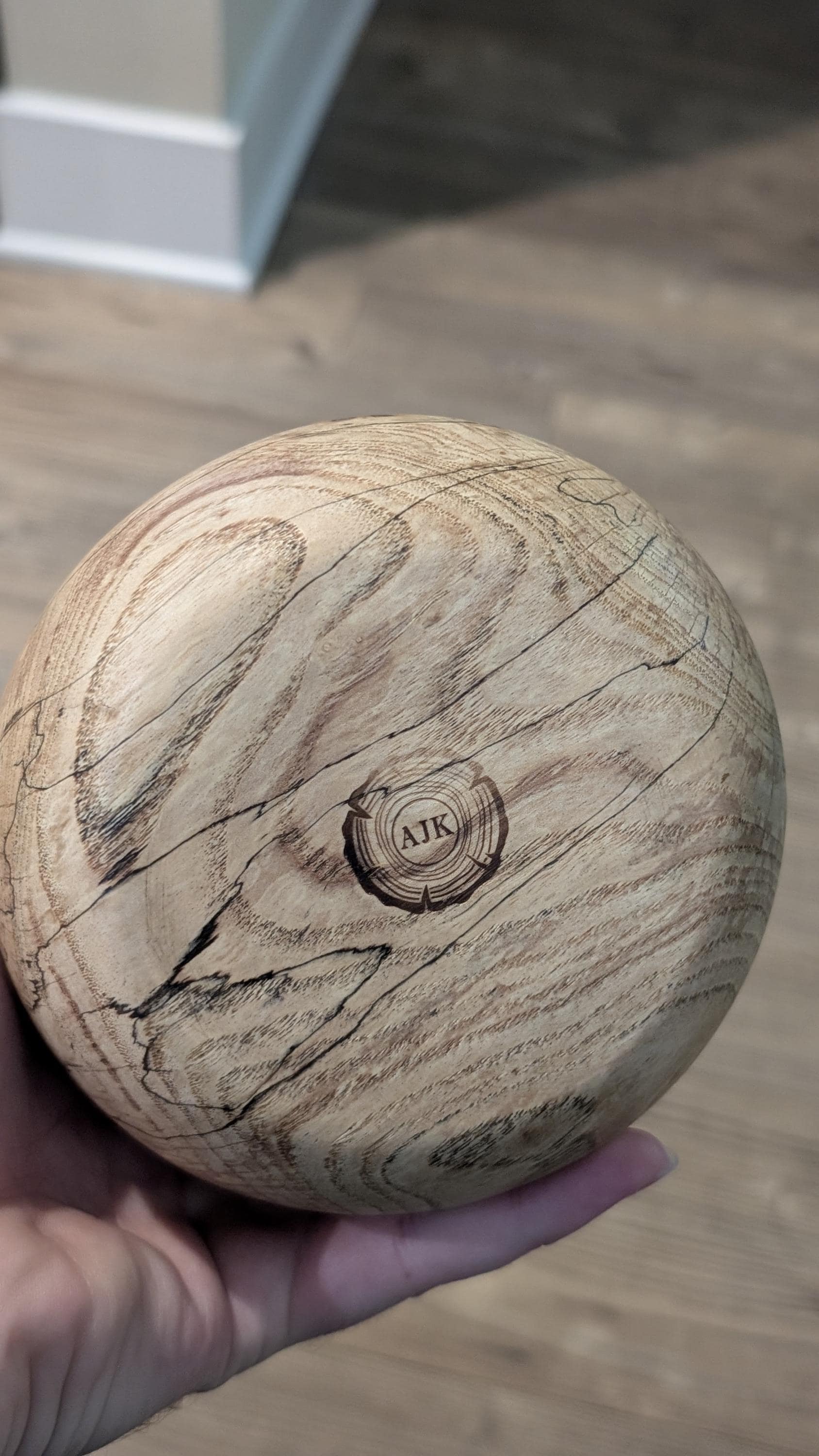 This is a handmade wooden item, so natural variations, spalting, small cracks, and organic features are part of its character and charm.